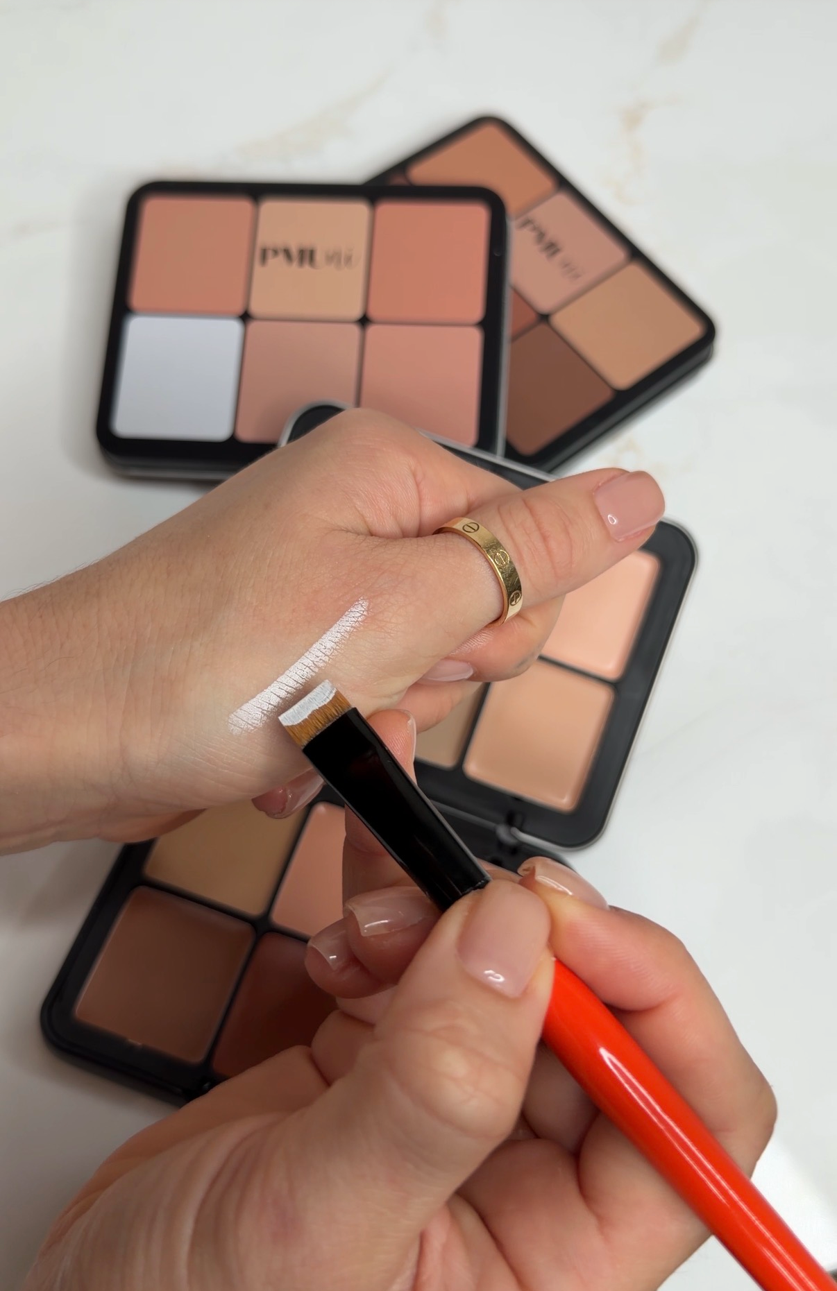 A highly pigmented, waterproof cream concealer palette featuring 12 versatile shades - from pure white and soft cream tones to rich, deep browns.